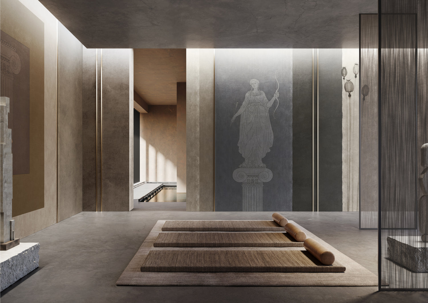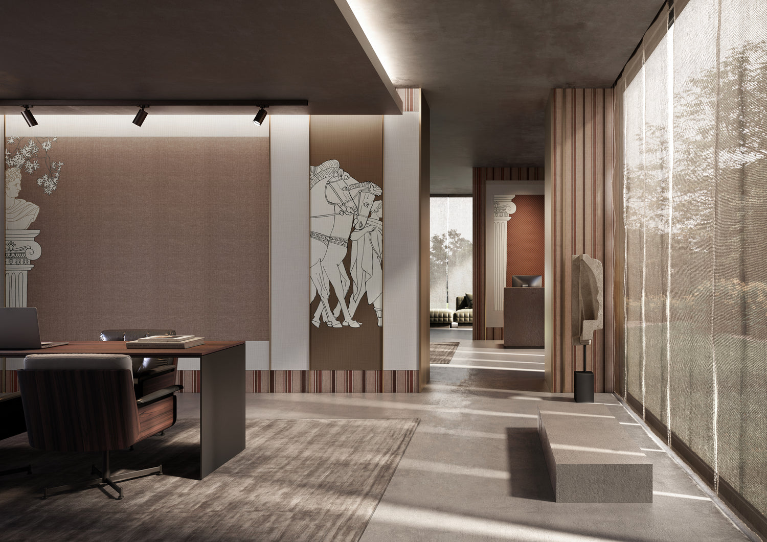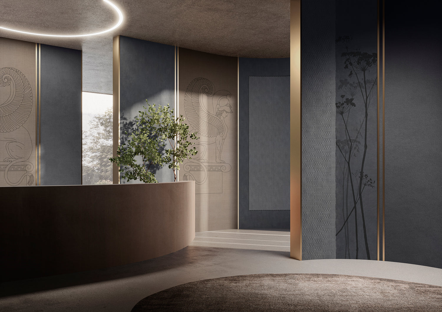 Arcadia Collection is a tribute to an ideal of beauty that has its roots in Greco-Roman classicism and provides a fresh perspective on interiors, perfect for high end projects, where the echo of epic poetry resounds through the spaces, giving unique visual narrative.