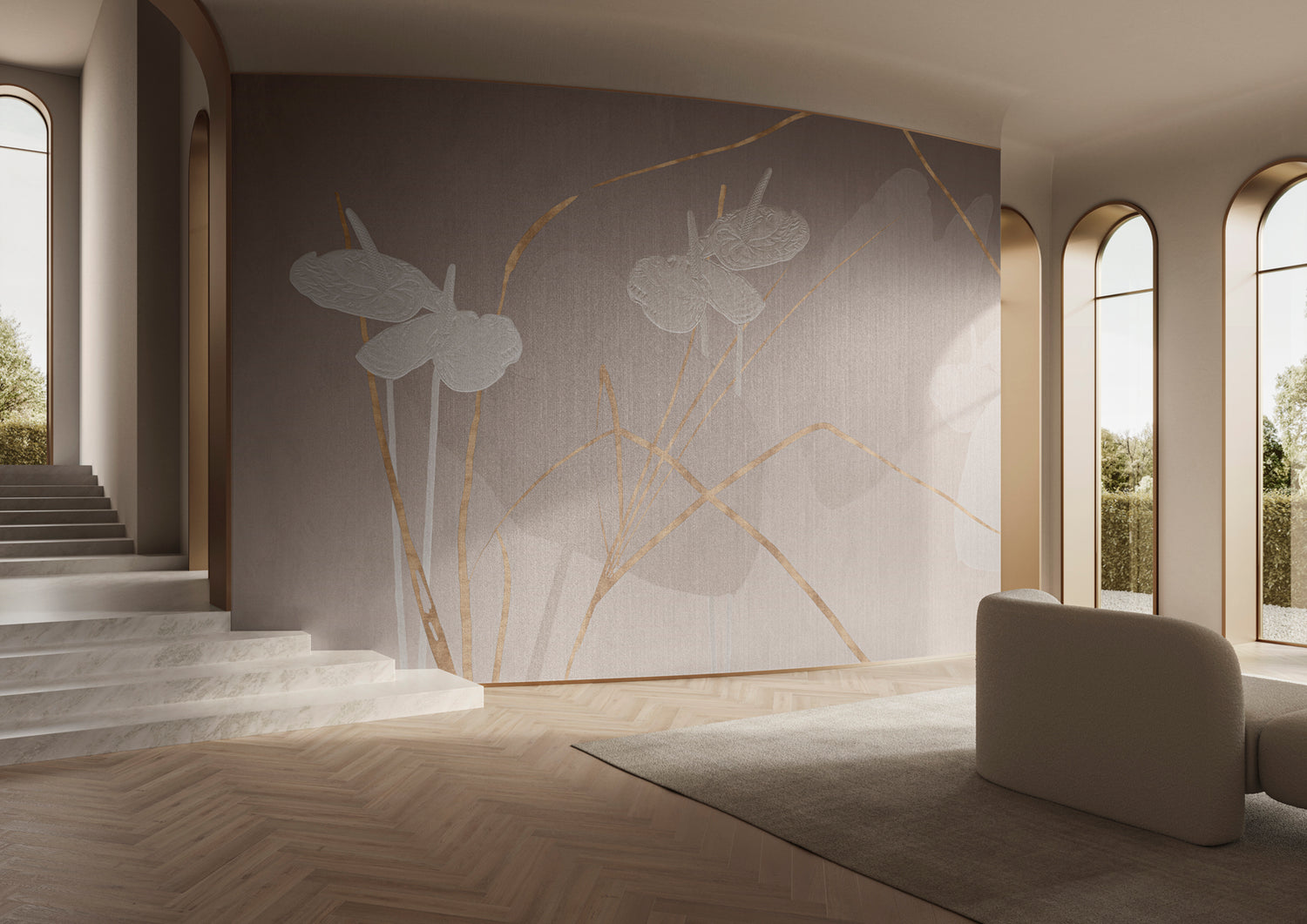 Divina Collection on GlamSatin was created in response to a desire for timeless beauty, loosely inspired by the Art Déco period, the glorious, sophisticated atmosphere of Francis Scott Fitzgerald’s The Great Gatsby, and the iconic women of that time.The elegance and sparkle of the billowy silk dresses that these muses wore so sublimely and the clouds of exotic fragrances they would wrap themselves in are all evoked in the decorative scenes crafted on GlamSatin, the luminescent material designed by Glamora for creating uniquely captivating interiors. Divina Collection uses a dream-like narrative to bring to mind the sophisticated visual world of the 1920s and 1930s, reimagining this according to 21st-century principles.