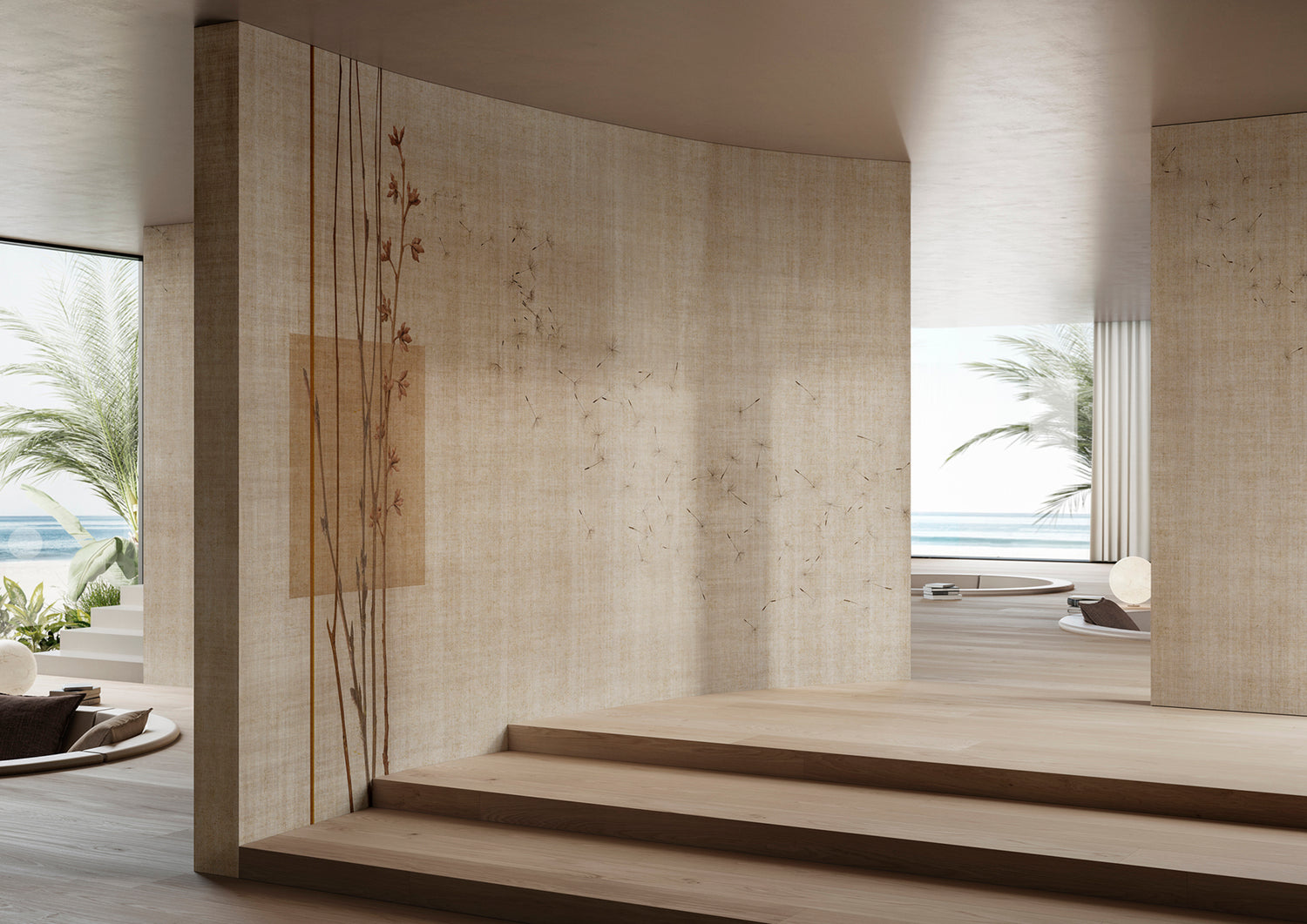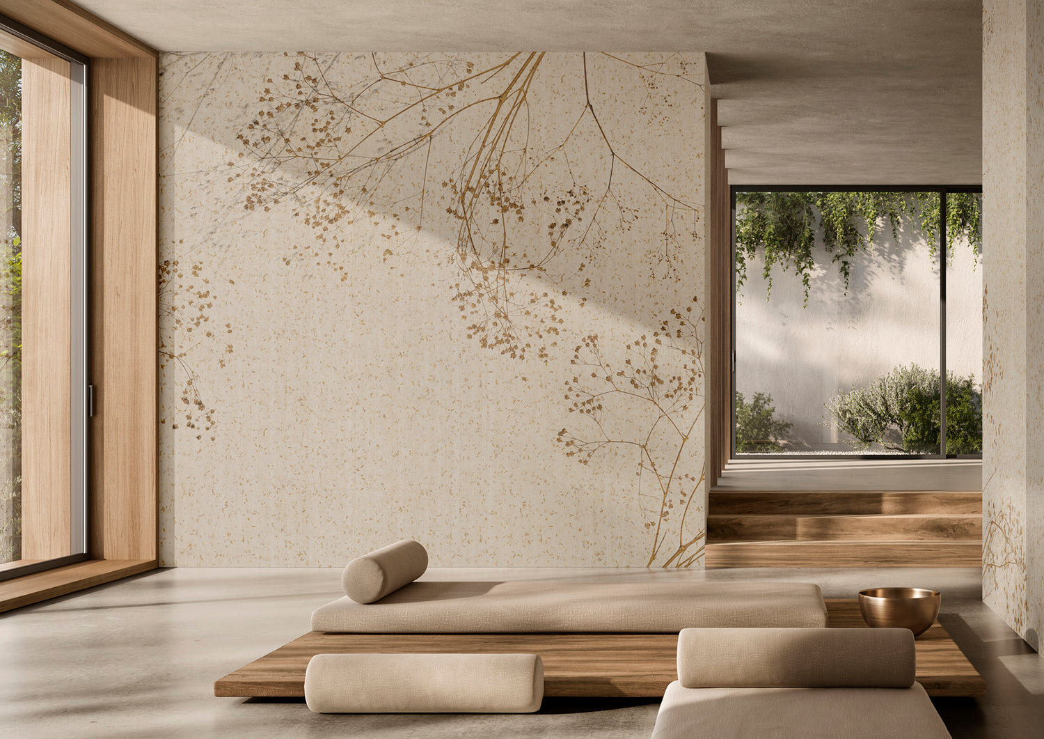 Komorebi Collection on GlamPure, The Organic Wallcovering, has been created to fulfil the desires of those who love beauty and elegance, and who seek sustainable interior design solutions which support the wellbeing of those who use them.The Japanese term Komorebi evokes the image of “sunlight filtering through the trees”, a vision of tranquillity and energy which brings a new dimension to the space. Through this collection, inspired by the Japandi aesthetic, a blend of Scandinavian and Japanese style, Glamora promotes a biophilia-based approach to living and encourages a reconnection with nature.